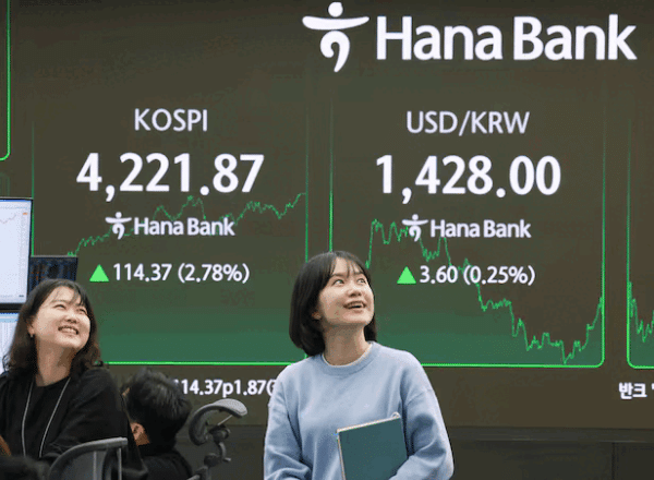 이날 코스피는 전 거래일 대비 2.78% 오른 4221.87에 마감했다. 이날 전 거래일 대비 15.68포인트(0.39%) 오른 4123.36으로 개장한 코스피는 장중 큰 폭의 상승세를 이어가며 오전 11시 30분쯤 장중 4200선을 처음으로 돌파했다.